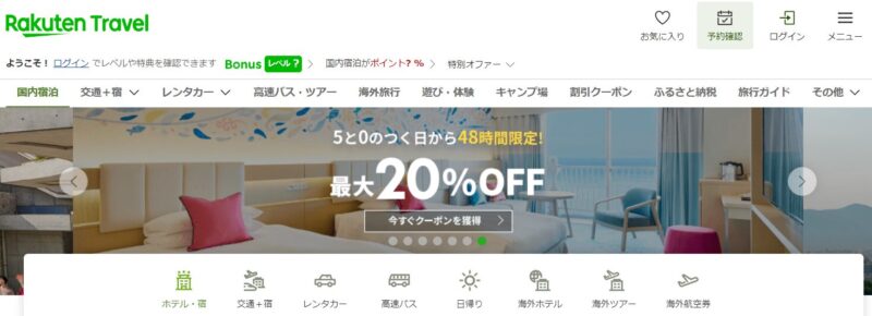 - 5と0のつく日はホテル・宿が最大20%OFF