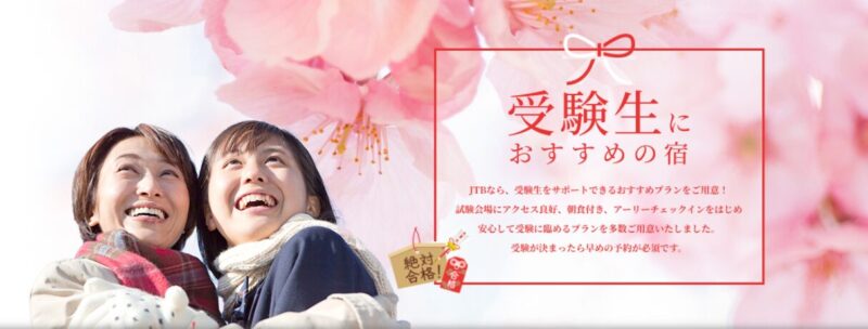 国内最王手のJTBは『アーリーチェックイン』や『朝食付きプラン』など、受験生をサポートするおすすめプランが豊富です。