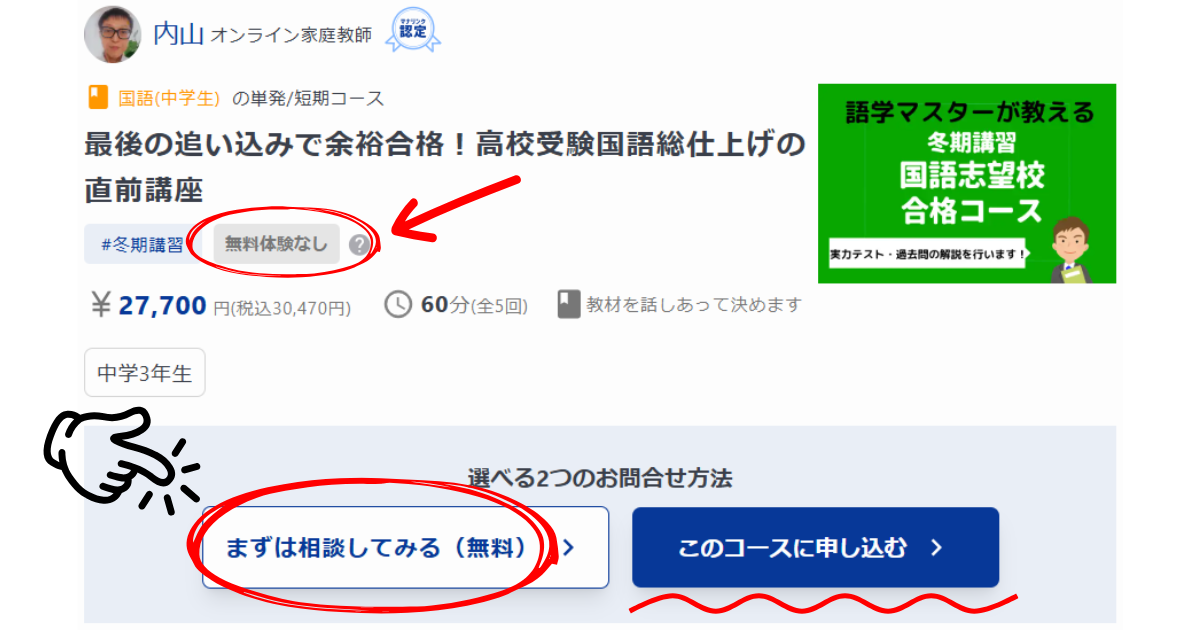 その家庭教師を『短期間だけ』『スポット的に』利用したいけど