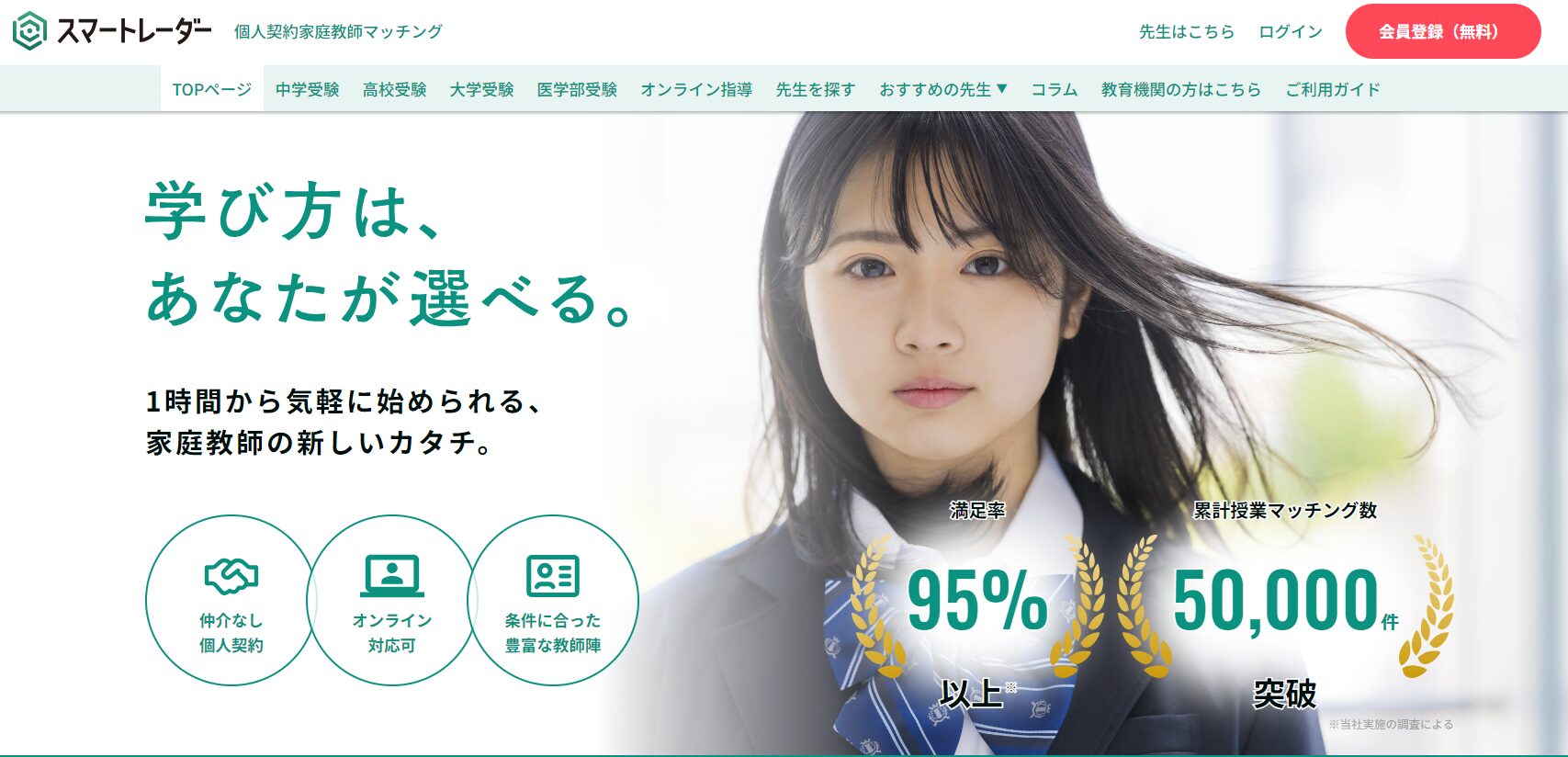 短期間でも納得のいく家庭教師に出会えるよう、以下より