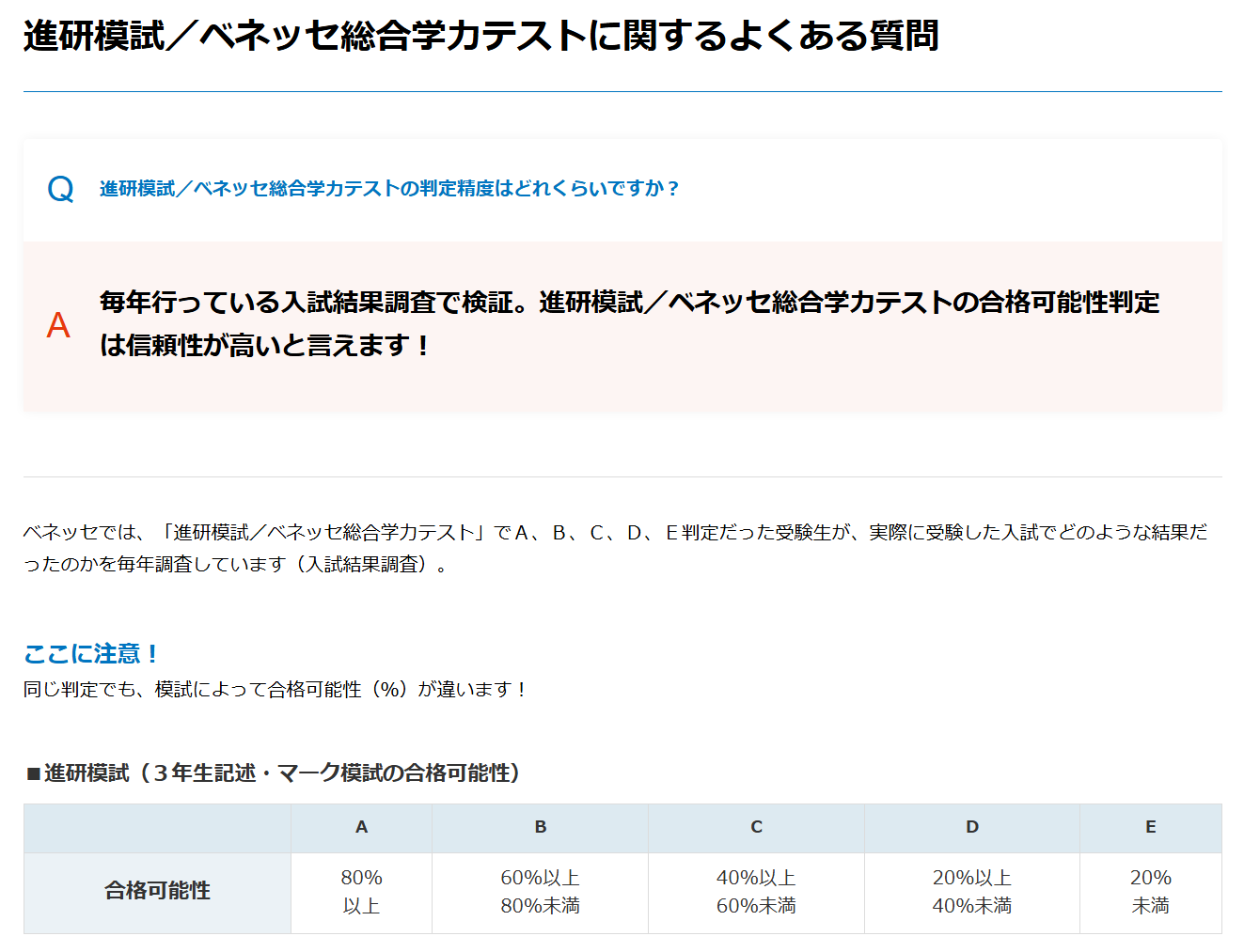 進研模試の合格判定基準は、毎年おこなっている入試結果調査をもとに判定しています↓