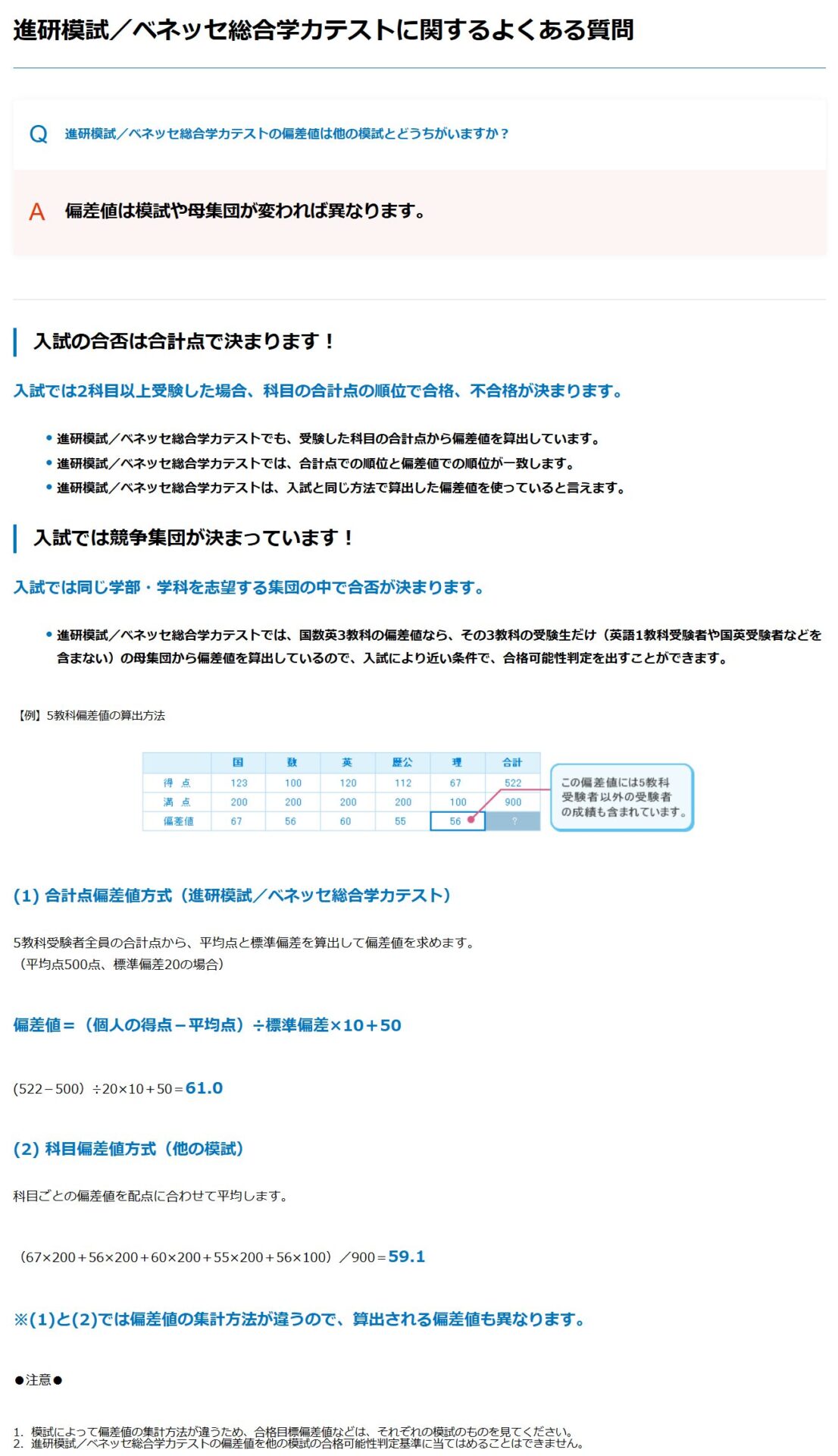 気になる偏差値の見かたや注意点についても、以下のように述べています↓