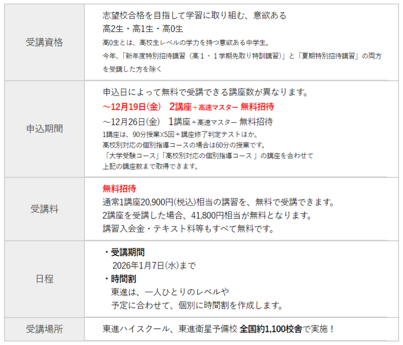 【対象】高2生・高1生・高0生~12/12(金) 3講座+高速マスター無料招待